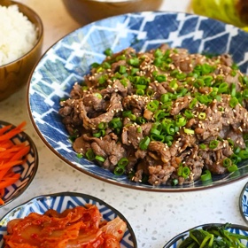 Transfer to a serving dish and repeat the process with the remaining beef. Sprinkle on the sesame seeds and sliced scallions before serving. Dig in!