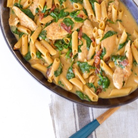 For my gluten-free friends, I use Tito’s Vodka. Their vodka is made with corn and it’s 100% naturally gluten-free. If you are not dairy-free, I highly recommend stirring in parmesan cheese at the end along with the spinach. It really elevates the dish, but it’s truly fantastic either way!