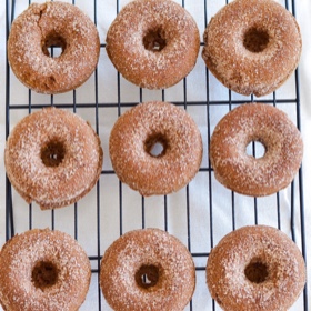 In a small-wide mouth bowl, combine the remaining 1/2 teaspoon of ground cinnamon and sugar. One at a time, place each donut face down in the bowl and rotate until all of the sides are coated in cinnamon sugar. Serve.