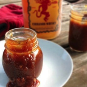 While the onions, garlic, and whiskey are simmering, in a medium bowl, combine the apple butter, ketchup, vinegar, Worcestershire sauce, brown sugar, mustard, cayenne pepper, salt, and black pepper. Stir to combine.