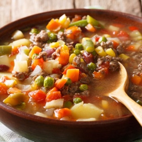 Add beef, tomato paste, tomatoes, broth, potatoes, and Italian seasoning. Stir to combine. Bring to a boil, then reduce heat to medium-low and simmer for 20-25 minutes.