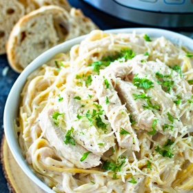 5. Serve the chicken with the gluten-free pasta and top with 5-Ingredient Dairy-Free Alfredo. Season with salt and pepper to taste.