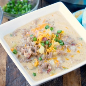 Turn Instant Pot off, stir in remaining 1/2 c of cheese and serve topped with additional shredded cheese and chives/green onions or a dollop of sour cream.