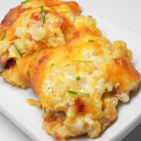 Bake in the preheated oven for 45 minutes. Remove the foil & sprinkle the remaining cheddar cheese evenly across the potatoes. Bake until the cheese is bubbly and lightly browned around the edges, about 15 minutes.
