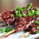 A garnish of fresh green scallions is optional, but it can instantly transform this rugged plate of beef skewers into a more refined dish. Serve immediately!